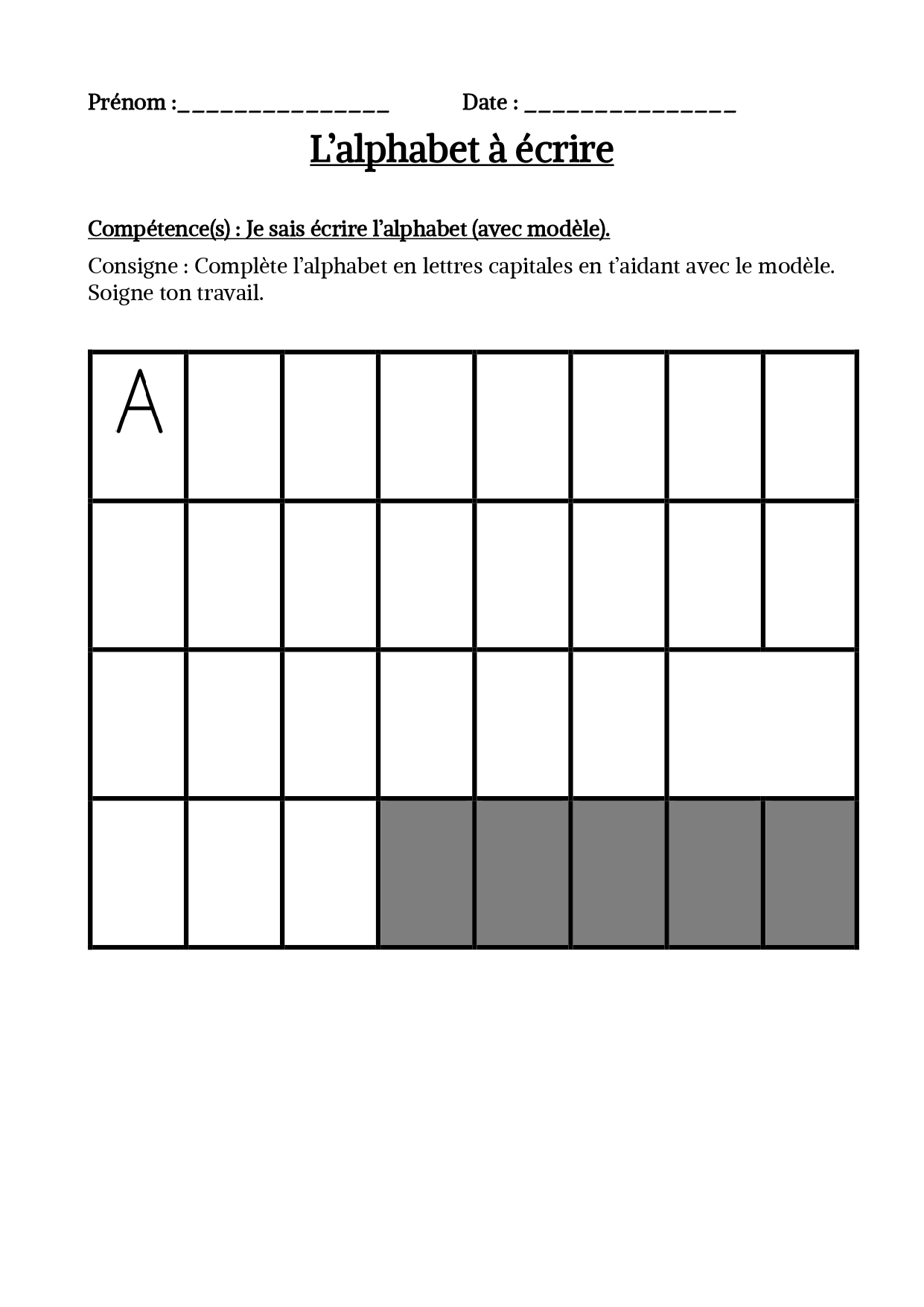 2 modèles de cahier d’écriture des lettres en capitale (à imprimer pour évaluer vos élèves) + 1 évaluation bonus avec remédiation.
