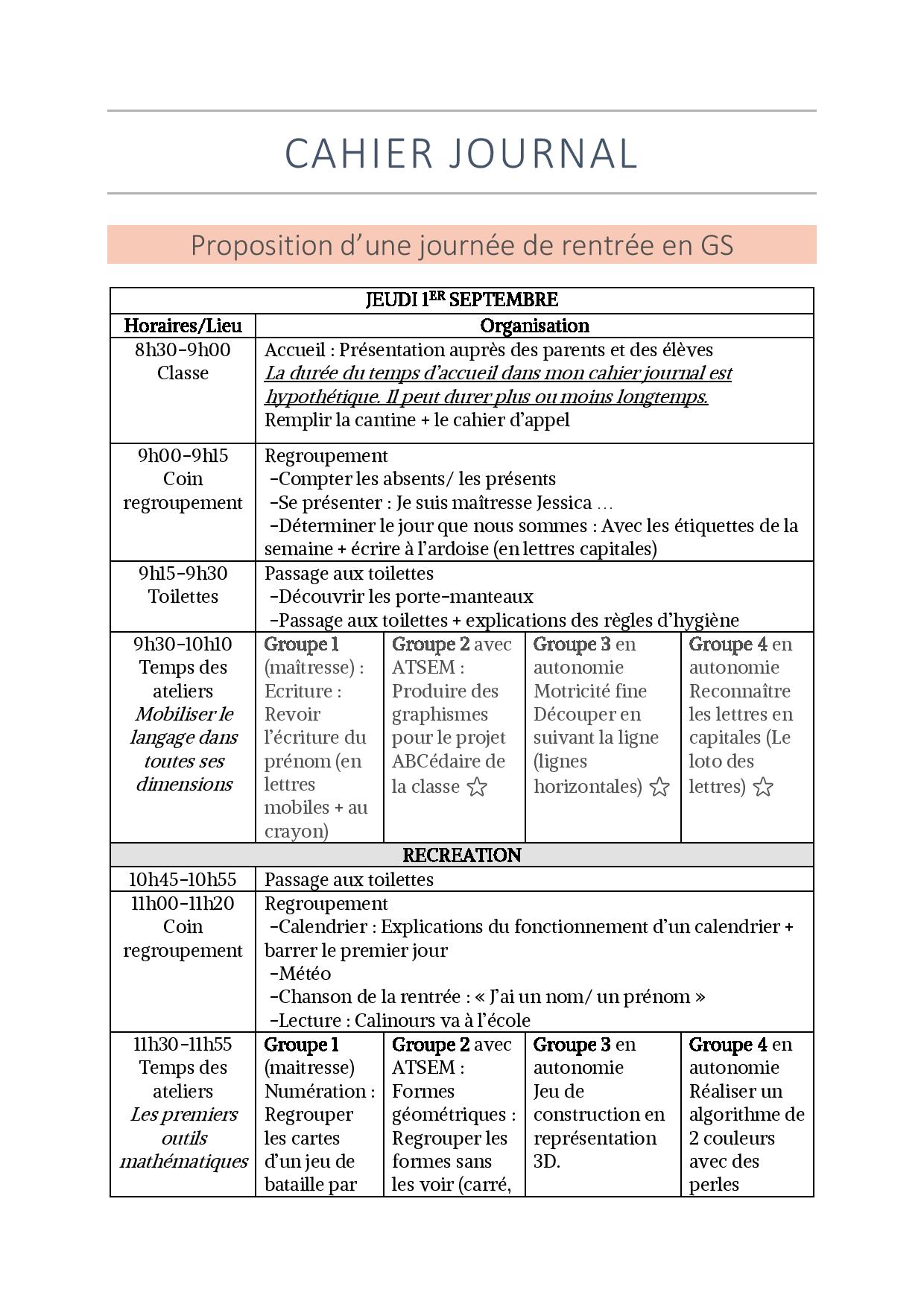 Le cahier journal de la rentrée : Le modèle à personnaliser