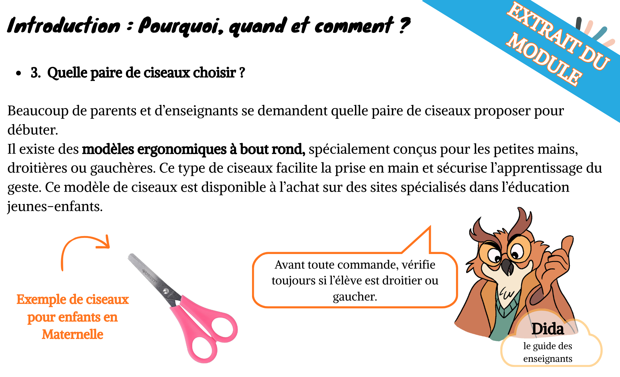 Pour tes élèves qui n'ont jamais tenu de ciseaux