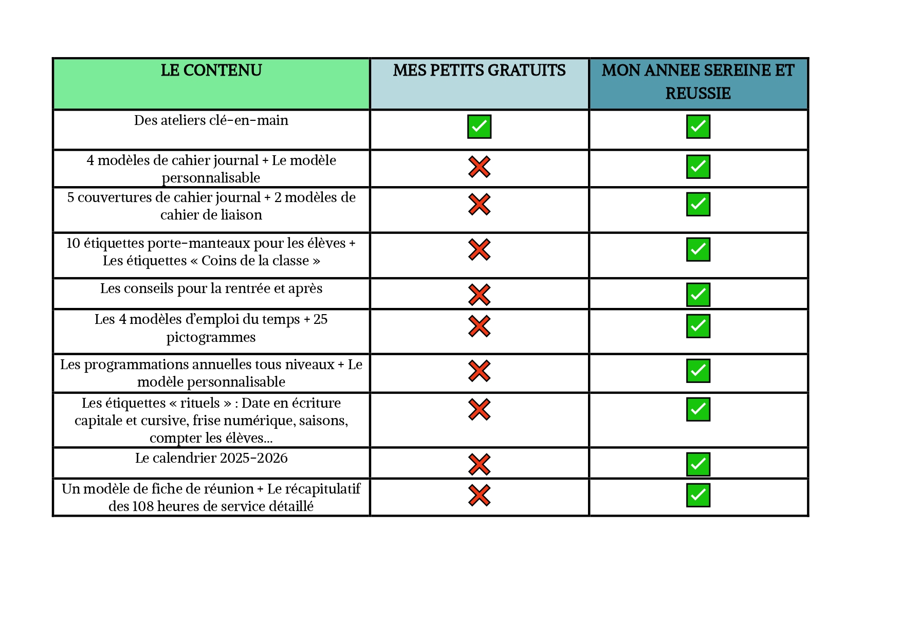 Avec le kit "Mon année réussie et sereine", tu prends de la hauteur : tu ne prépares pas seulement une saison, mais toute ton année. Programmations annuelles, emplois du temps, étiquettes, pictogrammes, rituels… un vrai cadre qui te fait gagner du temps sur la durée.